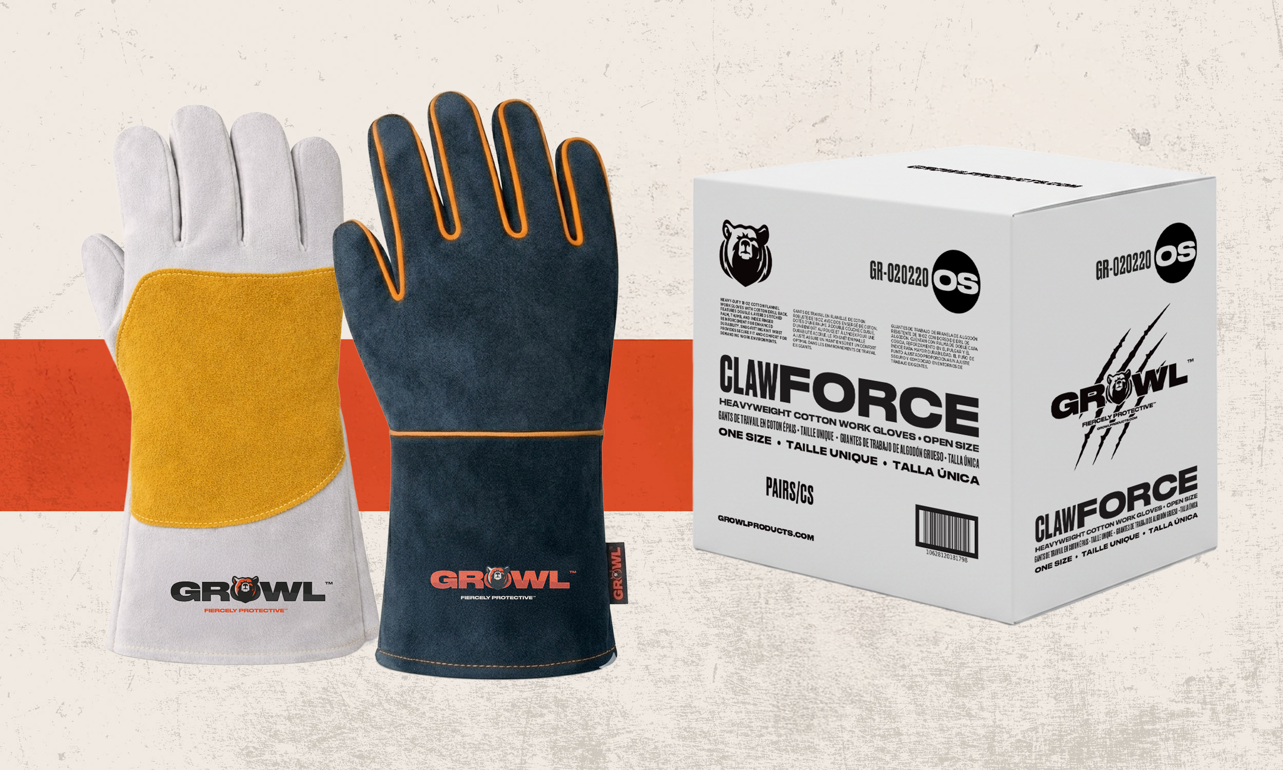 Claw FORGE Split Cowhide Leather Welding Gloves feature durable split leather construction with Kevlar stitching for maximum seam integrity. The extended cuff provides forearm protection from sparks and heat.
