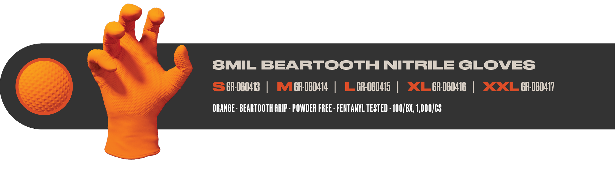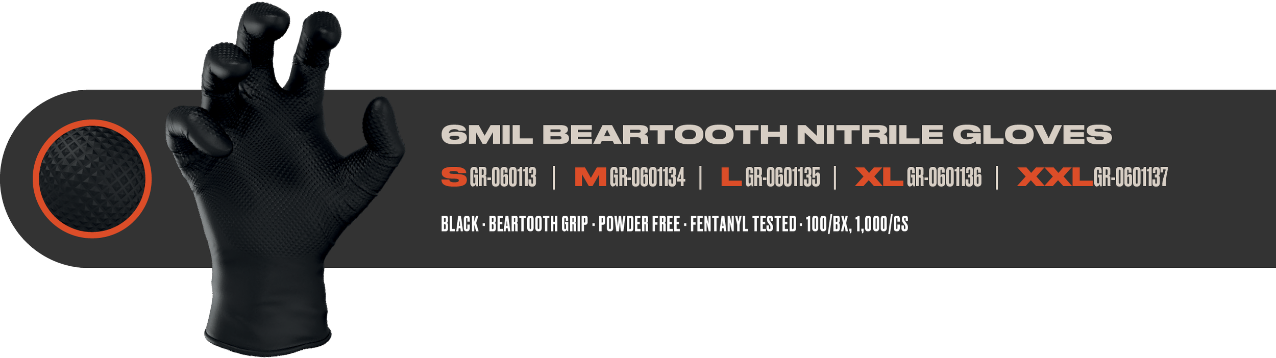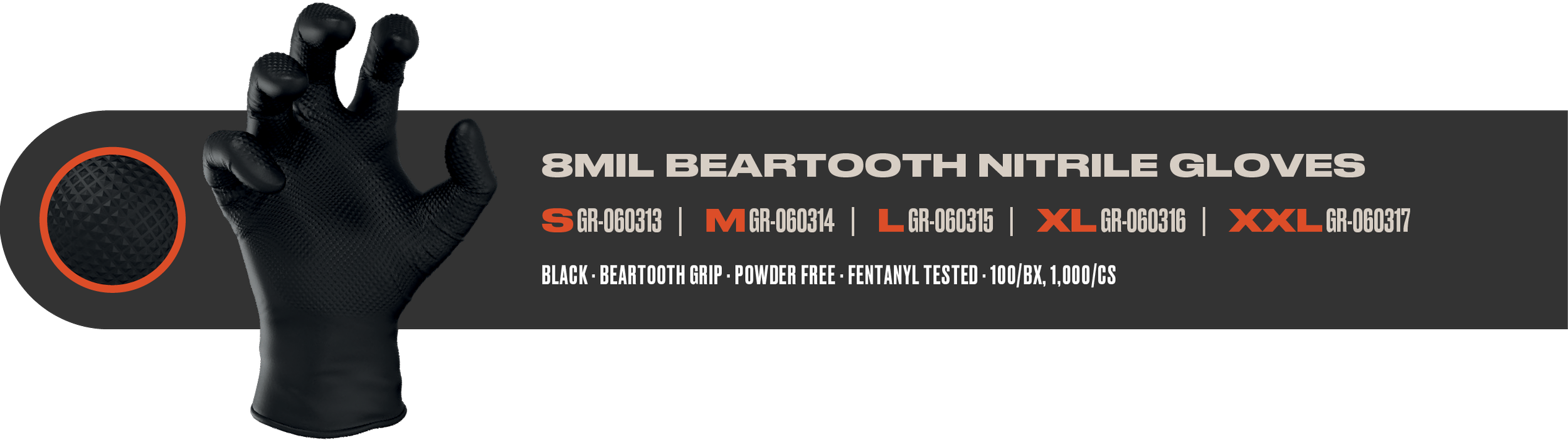 Our GRRRIP heavy-duty nitrile gloves feature a Beartooth grip texture that delivers unbeatable control—even in wet conditions. They’re available in multiple colors and thicknesses to meet a wide range of applications.