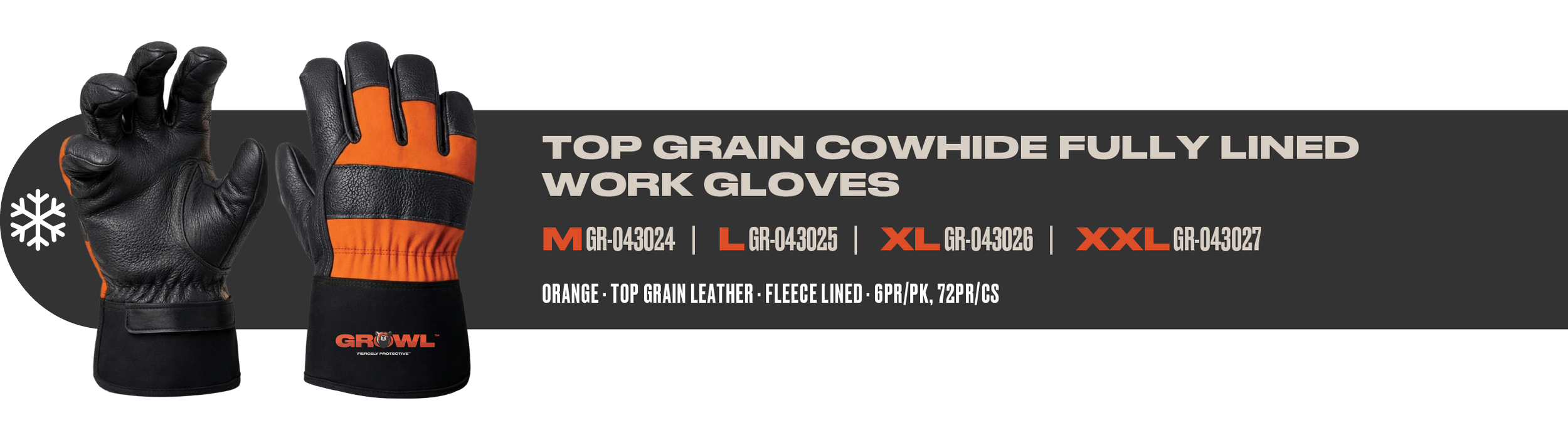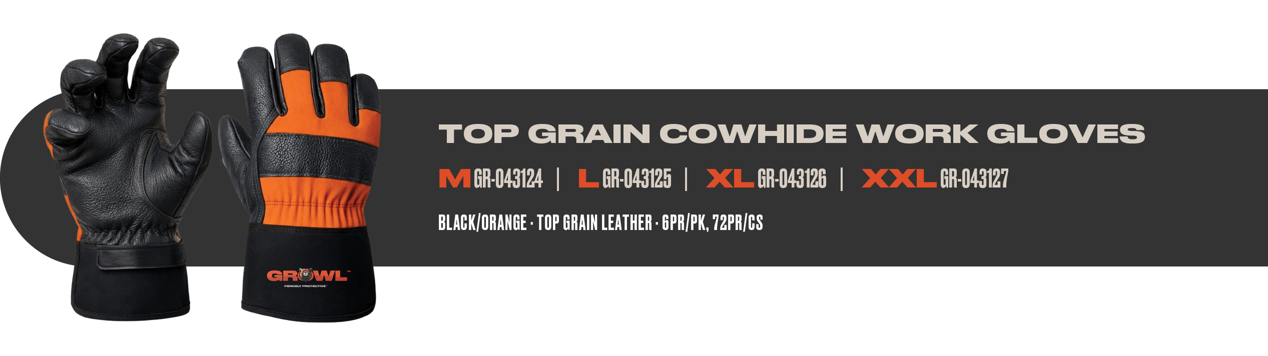 Top grain cowhide leather — premium leather for superior dexterity, comfort, and durability.