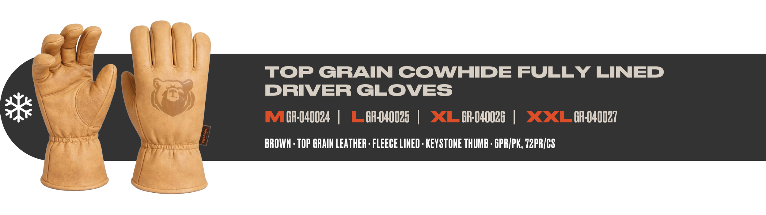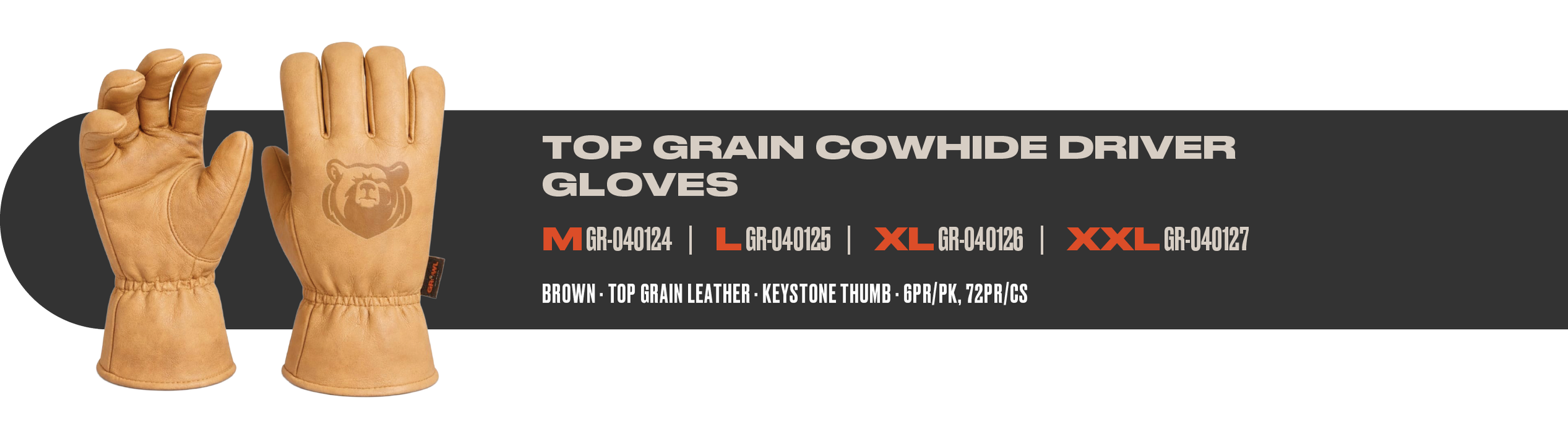 Claw SKINZ Top Grain Cowhide Driver Gloves feature premium top grain leather with a keystone thumb for natural hand movement and comfort. Built for tasks requiring dexterity and durability without sacrificing feel.